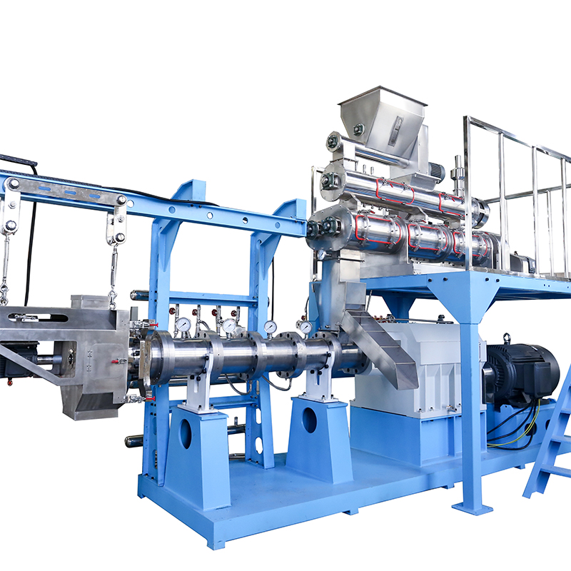 雙螺桿擠壓膨化機(jī)具有適應(yīng)性強(qiáng)、滑移輸送及自潔等優(yōu)點(diǎn),但其結(jié)構(gòu)復(fù)雜,投資成本高,相應(yīng)的維修和操作成本也較高。因而,雙螺桿擠壓膨化機(jī)一般用于那些具有高附加值的水產(chǎn)和寵物飼料生產(chǎn)中,如鰻魚(yú)、甲魚(yú)及幼魚(yú)飼料的生產(chǎn),因?yàn)檫@些產(chǎn)品在市場(chǎng)上銷(xiāo)售的價(jià)格足以回報(bào)雙螺桿技術(shù)的制造產(chǎn)品所需的費(fèi)用;另外一些特種水產(chǎn)飼料如微粒水產(chǎn)飼料(直徑為0.8~1.5mm)、高脂肪水產(chǎn)料及生產(chǎn)量小但配方常變的飼料也需采用雙螺桿擠壓膨化機(jī)進(jìn)行生產(chǎn)。