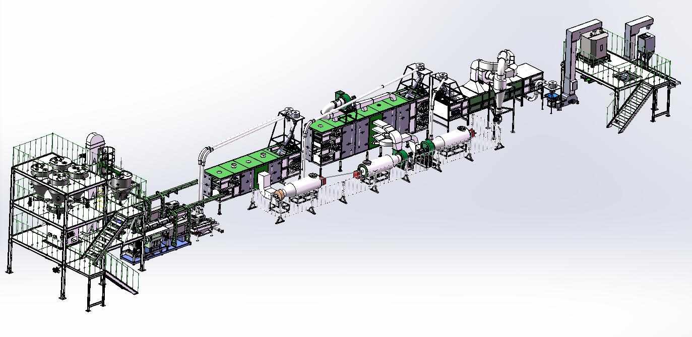 干燥:顆粒通過多層烤箱進(jìn)行干燥,溫度控制在0-200度之間,烘烤時間可根據(jù)速度調(diào)節(jié),以去除水分并增加保質(zhì)期
