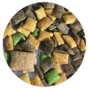 工藝方面寵物食品生產技術可將客戶的配方的體現在產品的形狀、大小、適口性、膨化度以及水分含量等,并可按照客戶要求著色、噴油、噴漿、噴粉以及成品自動混色(料)。